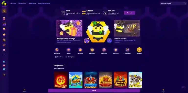 Wazbee הוא קזינו אונליין מרשים שבאמת מתבלט. הוא מציב סטנדרט חדש לדור חדש של קזינואים אונליין עם פיצ’רים ידידותיים לשחקן ושקיפות.